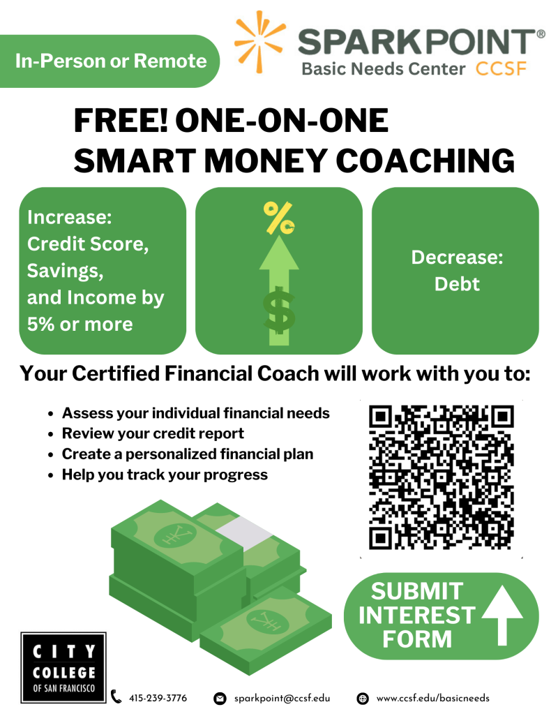 Come by the SparkPoint Center at CCSF in Student Success Center, Room 2106 during Workshop Wednesdays, Weekly from 11am-12pm. These sessions are hybrid, stop by to meet with an Employment Specialist.