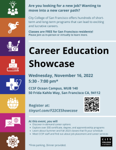 Whether you are deciding or exploring your major and career—or somewhere in between—CCSF supports your career success as you plan for now and into the future. At all of our educational centers, CCSF works to support your readiness to advance your college and career goals.